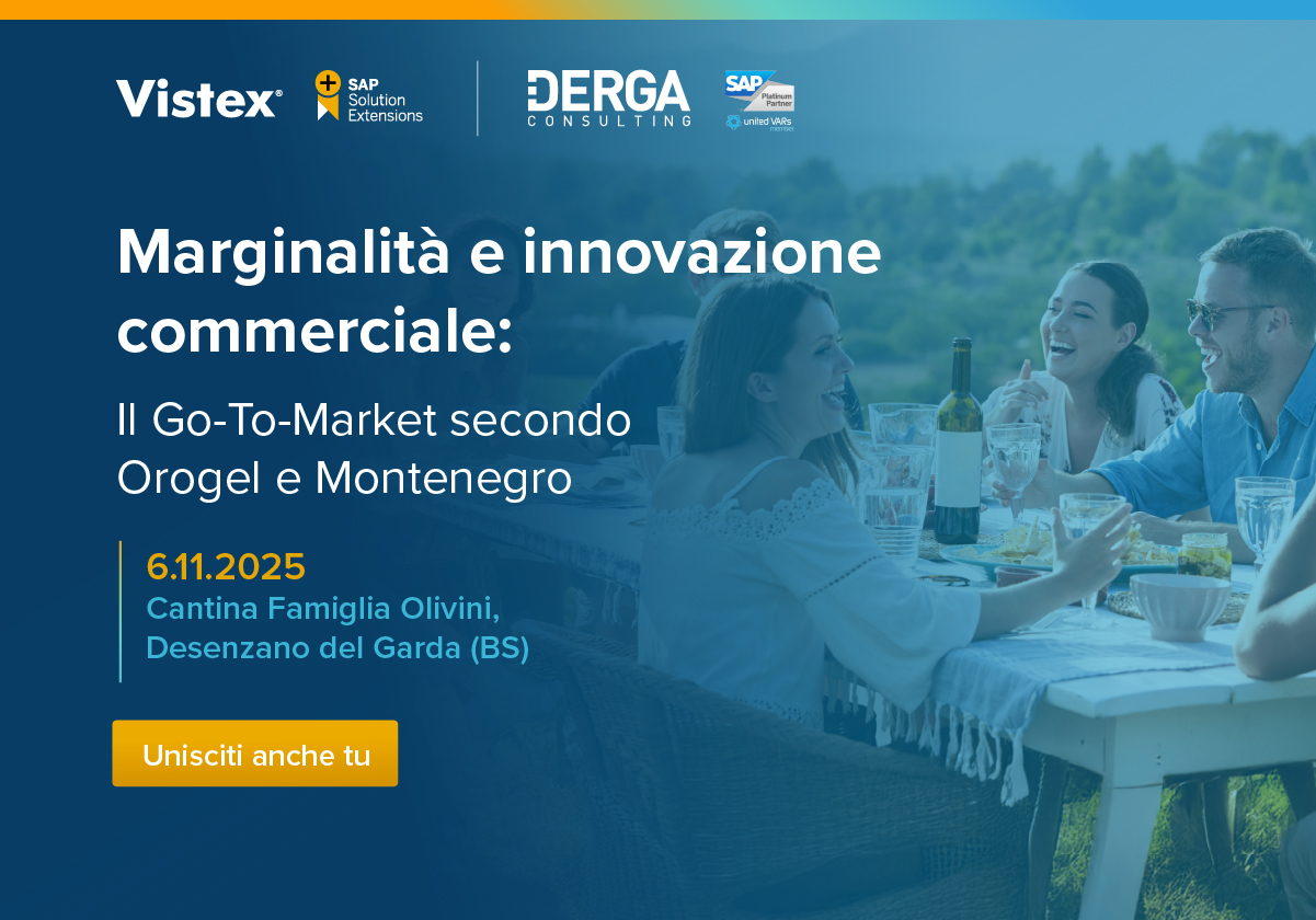 Le aziende che crescono più rapidamente oggi sono quelle che sanno adattare le proprie strategie di vendita in modo dinamico, trasparente e orientato ai dati. Con questo appuntamento, organizzato da Vistex e Derga Consulting, dimostreremo come la tecnologia può diventare il motore di una strategia di Go-to-Market integrata e vincente.